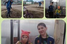 Үз йортлары белән яшәүче мәктәп укучылары әти-әниләренә ярдәм йөзеннән йорт яны территориясен чистартуга чыктылар.