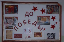 В школе работает стенд и выставка приуроченные к счёту дней до Дня Победы.