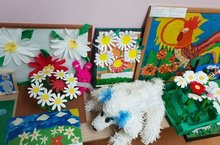 Сегодня учащиеся 1 класса побывали на мастер-классе В ЦДТ развитие,где учащиеся делали открытки на праздник.