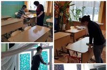 Бүген мәктәптә санитар көн узды, анда ата-аналар һәм мәктәп укытучылары актив катнашты. Идәннәр, стеналар, тәрәзә төпләре дезинфекция матдәләре белән юылды.