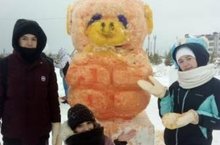 Сегодня учащиеся 10 класса сделали снежную скульптуру в Новогоднем городке.