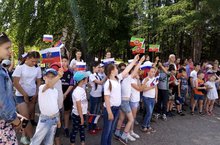 Сегодня ребята из пришкольного лагеря "Улыбка" участвовали в празднике, посвящённой ко Дню России.