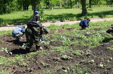 Ял һәм хезмәт лагерендә укучылар түтәлләр утадылар, чәчәкләрне сирәкләделәр.