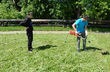 Хезмәт лагерендә эш кайнап тора. Бүген укучылар стадионны чистарттылар, печән чабарга булыштылар.