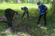 Ял һәм хезмәт лагеренә йөрүче балалар мәктәп территориясендә үскән корыган агач ботакларын кистеләр.