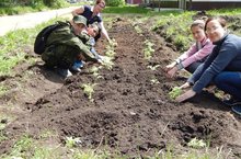 Хезмәт һәм ял лагерендә укучылар бүген помидор утырттылар.