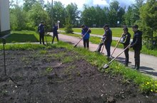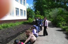 Мәктәп яны хезмәт лагерендә укучылар мәктәп яны территориясендә чәчәкләр утырттылар.