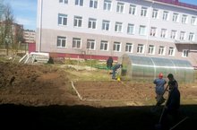 Укучылар һәм укытучылар мәктәп яны бакчасында, питомник утырту эшен башкаралар, теплицада үсентеләр утырталар.