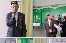 Җиңү көне уңаеннан мәктәбебезнең еш кунагы Ахметшин Якуб бабай бик теләп укучылар белән чираттагы очрашуына килде һәм бик күп истәлекле вакыйгалар сөйләп китте.Укучылар үзләрен кызыксындырган сорауларга җаваплар ишеттеләр.Очрашу концерт номералары белән дәвам итеп, чәй табыны артында тәмамланды.