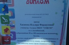 Ученица 4 класса Хасанова Ильзира стала призёром Республиканской полиолимпиады по математике, русскому языку, татарсткому языку, английскому языку среди учащихся 4 классов и съездила на награждение в город Актаныш, где министр образования Э.Фаттахов вручил им грамоты и памятные подарки.