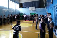 Көндәлек иртәнге зарядкабызны бүген барлык класслар бергә спортзалга җыелып, файдалы күнегүләр эшләп башладык