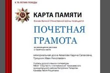 В год 70-летия Победы в великой Отечественной Войне издательство "Просвещение" проводила всероссийский сетевой межшкольный проект "Карта Памяти" идея проекта была в том, чтобы ученик, учитель, класс или школа смогли рассказать о памятниках на территории своей малой родины... В преддвериях начала Великой Отечественной Войны были подведены итоги проекта, учащиеся и ученики нашей школы были приглашены в Москву. В проекте активно участвовали ученики 5 класса, 7 класса, 11 класса и учителя Камаева Л.Р. и Гараева З.В. Спасибо вас за ваш вклад патриотического воспитания подрастающего поколения.