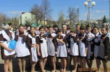 Бүген, 8 нче май көнне бистәбездә Бөек Җиңүнең 69 еллыгына багышланган тантаналы митинг булды. Безнең укучы кызларыбыз җырлы маршировка конкурсында3 нче урынны алдылар. Укучылар митингка сугышта катнашкан әби-бабаларының һәм туганнарының портретларын тотып горур стена булып басып тордылар.