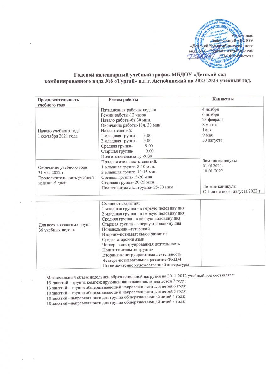 Годовой календарный учебный график на 2022-2023 учебный год