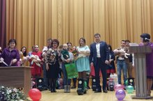 Поздравление и вручение материнского капитала, вручение подарка от профкома и зам. главы администрации Шамсутдинова А.Х. 17.03.2017
