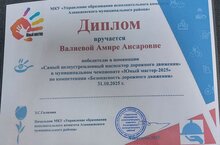 Поздравляем Валиеву Амиру в номинации "Самый целеустремленный инспектор дорожного движения " в муниципальном чемпионате "Юный мастер - 2025" 11.11.2025