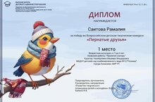 Поздравляем Саитову Рамалию с дипломом 1 места в конкурсе " Пернатые друзья" 14.11.2025