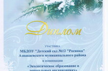 Диплом Министерства экологии и природных ресурсов РТ за участие в конкурсе "Эколидер" в номинации "Экологическое образование в дошкольных учреждениях" 05.05.2015