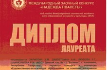 Диплом лауреата международного конкурса "Надежда планеты" награждаются Зарипова Э.М., Давлетшина А.Ф.,Якупова Р.Г., Шакирзянова Р.М. лауреаты конкурса "Русские сувениры" 24.02.2015