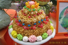 Это татарское национальное блюдо "Чак-чак" приготовлено нашими поварами.Для участия на конкурсе.Изобразили флаги Российской Федерации и Республики Татарстана. 03.09.2014