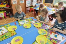 Аппликация в средней группе "Воробьи в лужах". Уртанчылар торкемендэ кисеп ябештеру шогыле. 31.03.2025