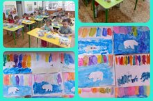 Рисование с элементами аппликации на тему: " "Белый медведь и северное сияние" в подготовительной группе. Мэктэпкэ эзерлек торкемендэ рэсем аппликация элементлары белэн " Ак аю hэм Тоньяк нурлары" 29.02.2024