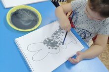 Кружок "Волшебные краски". Рисование тычком полужесткой кистью "Шубка для зайчика". "Куянга тун" ярым каты пумала белән буяу. 09.11.2023
