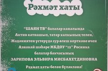 Рәхмәт хаты "Шаян ТВ" балалар калында Актив катнашып,татар халкының телен,Мәдәниятен үстерүдә зур өлеш керткәне өчен 15.01.2021
