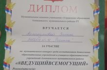 Диплом Ахметзяновой Залине за участие на муниципальном конкурсе среди воспитанников дошкольных образовательных учреждений Азнакаевского муниципального района "ВЕДУЩИЙВСЕМОГУЩИЙ" 28.11.2019