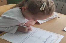 24 марта в рамках недели начальных классов в Гимназии среди учащихся начальных классов прошёл конкурс по каллиграфии "Пиши красиво!". Ученики, соблюдая стандарты каллиграфии и чистописания, списали текст.