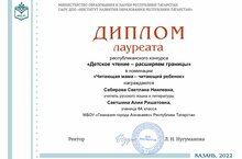 Республикакуләм "Балалар укуы: чикләрне киңәйтү" бәйгесендә жиңу яулаган 6А сыйныф укучысы Саетшина Алияне, 7Б сыйныф укучысы Әхмәдишина Әдиләне(укытучылары Сабирова С. Н.) , 9А сыйныф укучысы Ибраһимова Ләйләне (укытучысы Әхмәтова Л. Х.) котлыйбыз. Әлеге бәйге профессиональ осталыкны арттырырга, иҗади потенциалны тормышка ашырырга ярдәм итә. -