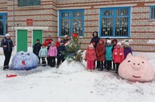 Карамалы авылының башлангыч мәктәбе укучылары һәм әти-әниләре мәктәп ишегалдында кар сыннары ясадылар.