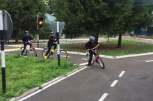 Наши юидовцы оттачивают свои умения в фигурном вождении велосипеда.