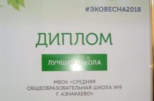 МБОУ «СОШ№9 г.Азнакаево» награждена дипломом в номинации «Лучшая школа» республиканского конкурса «ЭКОвесна 2018».