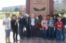 Воспитанники пришкольного лагеря возложили цветы у памятника воину-освободителю в Парке Победы. -