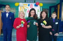 Учащиеся школы поздравляют своих учителей с прекрасным женским праздником 8 марта. -