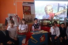Руководитель школьного музея Кашапова Р.Р. для учащихся начальных классов провела тематическую экскурсию, приуроченную к 100-летию со дня Великой октябрьской революции. -