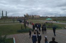 На учебной эвакуации учащиеся и работники школы отрабатывали алгоритм действий по сигналу тревоги. -