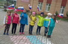 Воспитанники пришкольного лагеря в канун празднования Дня России коллективно раскрашивали трехцветный флаг нашей любимой и непобедимой России. -