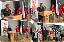 В целях патриотического воспитания подрастающего поколения в МБОУ «СОШ 9 г.Азнакаево» прошел Урок мужества, где приняли участие участник СВО - Каримов Р.Р., руководитель ТОС 9 - Самаров Р.М., начальник ТОС - Габитова З.С.