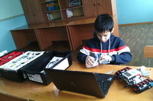 Объединение по робототехнике популярно и в дни зимних каникул. Ученик 5б класса Файзуллоев Рамазан спешит завершить сборку своей модели, чтобы перейти к программированию. -