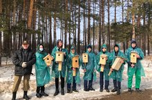 Сегодня учащиеся повесили скворечники, сделанные собственными руками и родителями школы.