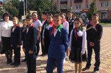 Юнармейский отряд (рук.Сулейманова Р.Р.) приняли участие в акции «Юнармия шагает с флагом ТАССР».