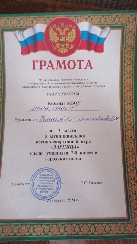 7-8 сыйныф укучылары арасында спорт һәм оборона-массакүләм эш айлыгы кысаларында Азнакай шәһәренең 7нче урта гомуми белем бирү мәктәбе базасында чираттагы «Зарничка» узды. Безнең команда 2 нче урынны алды! Котлыйбыз!