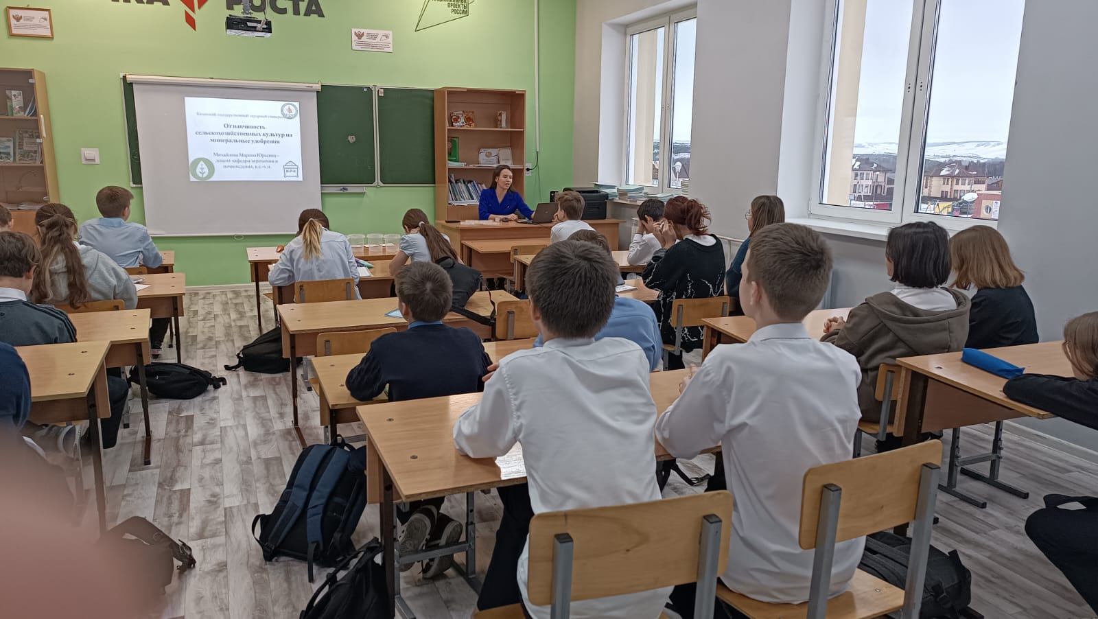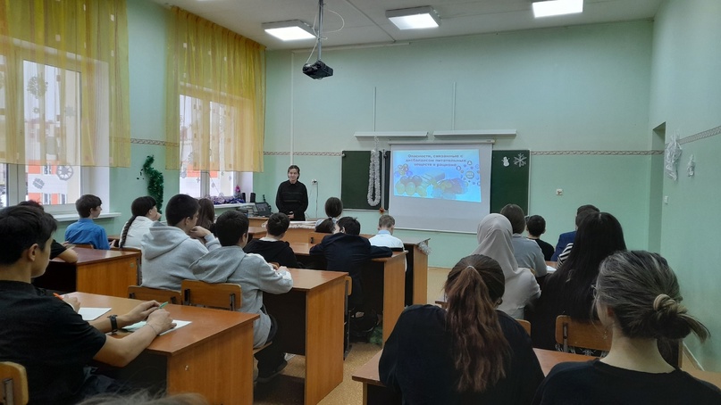 Аспирант кафедры разведения, генетики и биологии Казанской ГАВМ Шараков Ильгам Ильсурович для учащихся агрокласса первого года обучения провел занятие на тему "Понятие о биоценозе". Аспирант кафедры биологической химии Казанской ГАВМ Николаева Карина Юрьевна для учащихся агрокласса второго года обучения провела занятие на тему "Опасности, связанные с дисбалансом питательных веществ в рационе". Преподаватель к.в.н,доцент Сибгатуллова Аделя Камилевна провела занятие"Крахмал", преподаватель,доцент кафедры агрохимии и почвоведения,к.с-х.н Михайлова Марина Юрьевна провела занятие о минеральных удобрений на сельхозхозяйственных культур.
