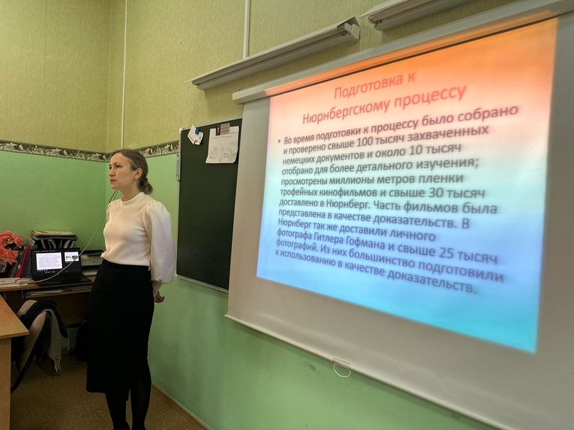 Сегодня учитель истории Ризванова И.А. провела тематический урок посвящённый Дню начала Нюрнбергского процесса./ Бүген тарих укытучысы Ризванова И.А. Нюрнберг процессы башлану көненә багышланган тематик дәрес уздырды. 20.11.2023