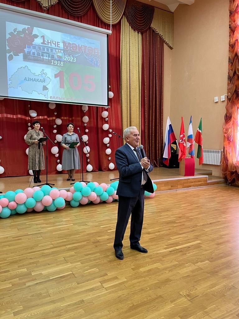Бүген Азнакай шәһәренең 1 нче урта мәктәбендә "Мәктәбемә 105 яшь" дип исемләнгән юбилей кичәсе узды.Кичәнең беренче өлешендә килгән кунакларга мәктәп буенча экскурсия оештырылды.Кунаклар мәктәп музее белән таныштылар, "Үсеш ноктасы" проекты буенча эш барышын күзәттеләр, җанландырылган театр карадылар, китапханәдә Марсель Галиевкә багышланган әдәби хәзинә белән таныштылар.