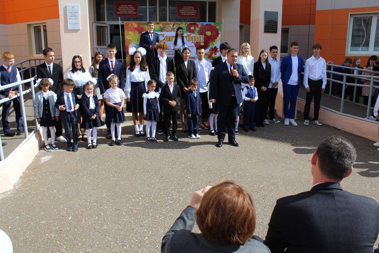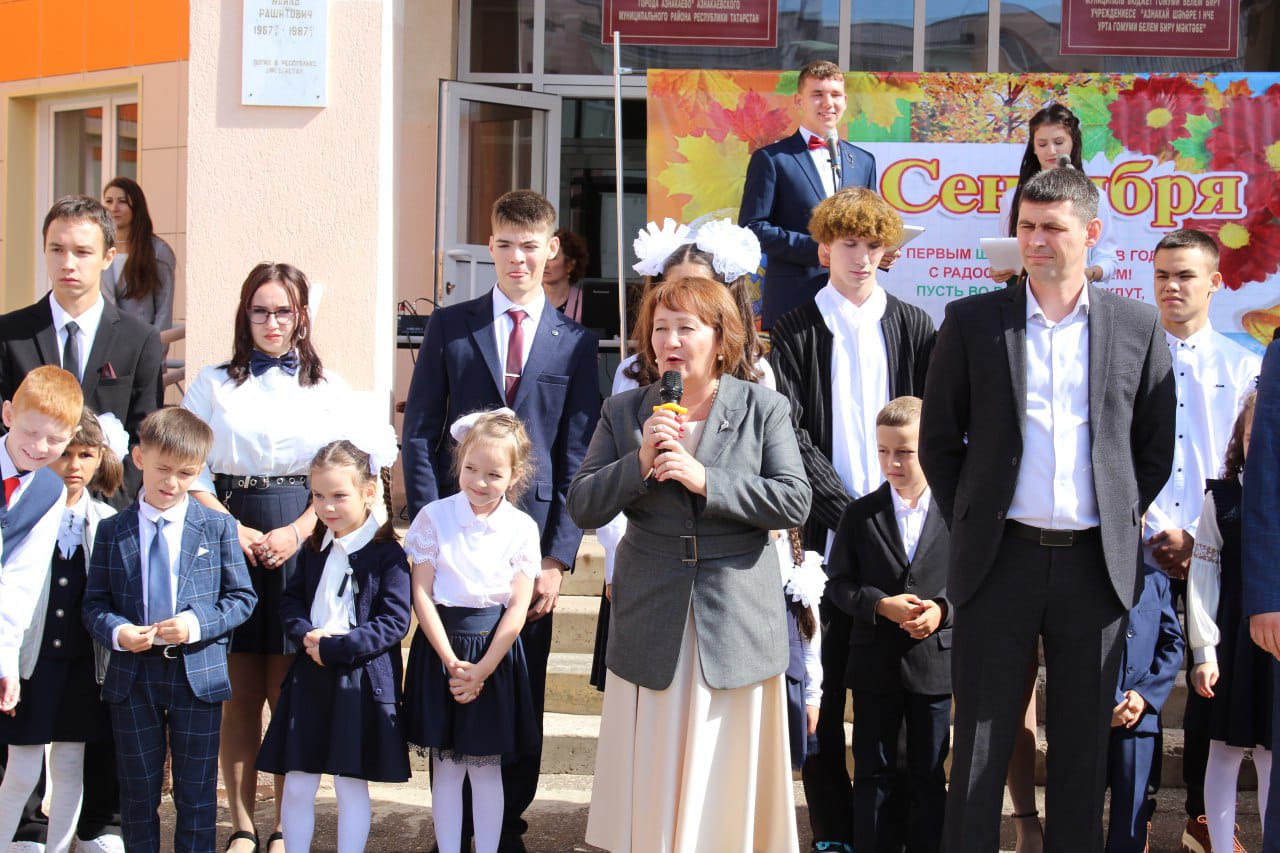 Кадерле укучылар, зур ихтирамга лаек булган укытучылар, әти-әниләр! Сезне бәйрәм белән котлыйбыз. Сезгә җан тынычлыгы, күңел көрлеге, тән сихәтлеге, эшегездә, укуыгызда, шәхси тормышыгызда зур уңышлар теләп калабыз.Сегодня наша школа вновь собрала своих учеников на Праздник знаний. Всего в школе обучается 649 учеников, из них 93 первоклассника. В торжественной церемонии приняли участие председатель палаты имущественных и земельных отношений Азнакаевского муниципального района Ильдар Зайтунович Хайдаров, депутат Азнакаевского городского совета Руслан Маратович Гарейшин, заместитель начальника Управления образования Азнакаевского муниөипального района Зульфия Рафисовна Зарипова. Директор школы Дамир Маримович Фаттахов открыл наш праздник словами поздравления. Гости поздравили учеников, родителей, учителей, выразили добрые пожелания.