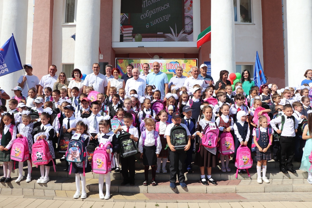 Сегодня прошла традиционная благотворительная акция «Помоги собраться в школу». Глава Азнакаевского муниципального района Марсель Зуфарович Шайдуллин в торжественной обстановке вручил будущим первоклассникам портфели. В портфелях есть необходимые канцелярские принадлежности:тетради, обложки, краски, пластилин, кисти, карандаши, цветная бумага, картон, клей и другая канцелярия, необходимая для учёбы. Всех принявших участие в акции сердечно благодарим, а нашим ученикам желаем успехов!