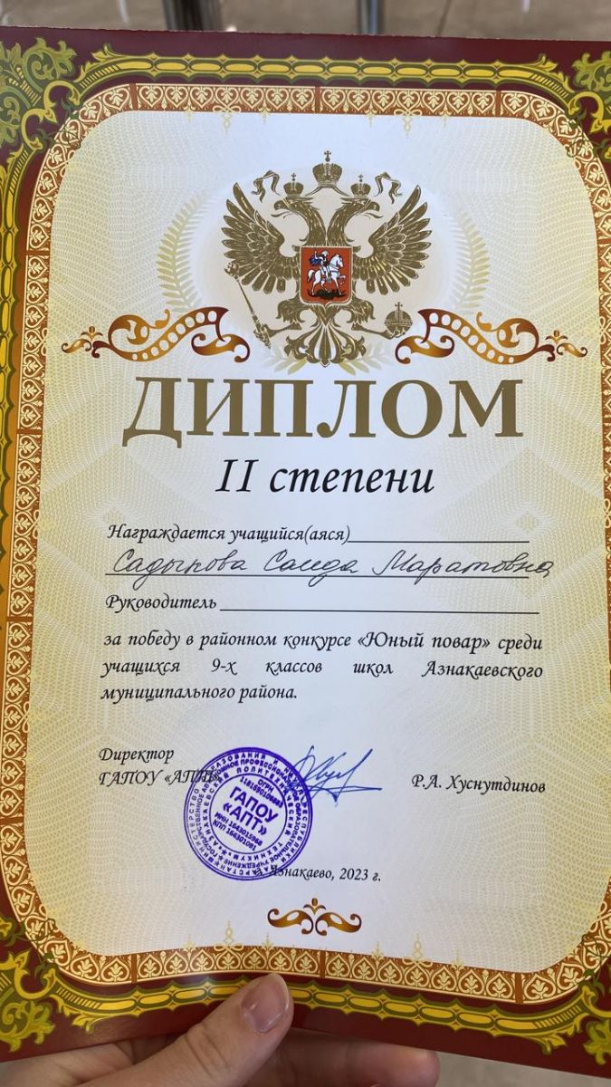 Призёр районного конкурса "Юный повар"/ "Яшь пешекче" район конкурсы призёры 07.04.2023